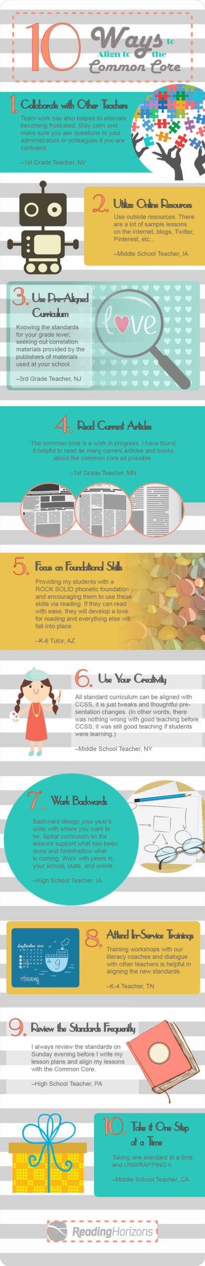 The common core is a work in progress. I have found it helpful to read as many current articles and books about the common core as possible. –1st Grade Teacher, MN