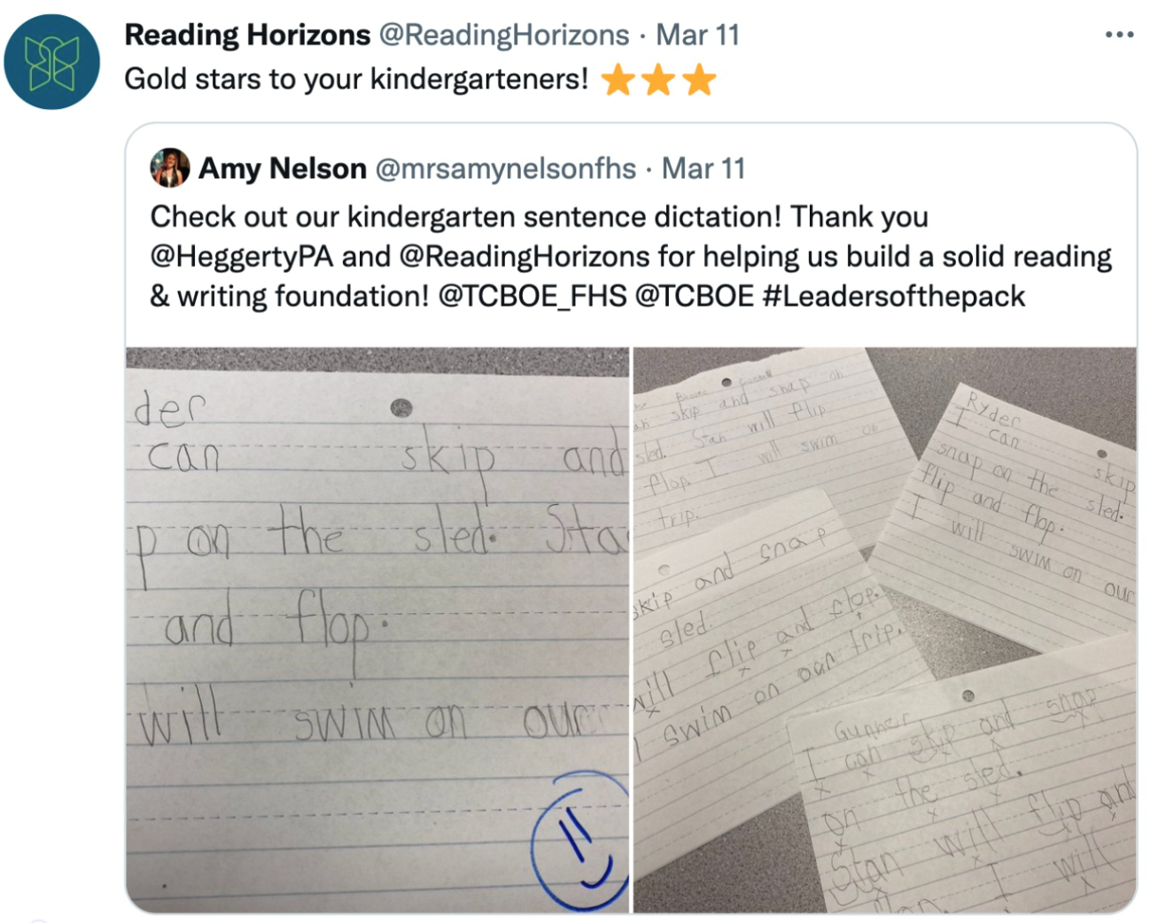 - Build skills from simple to complex. The Reading Horizons Transfer Cards intentionally move from the practiced skill in isolation into sentences. We love how Ambré Martin continues the process and has her students think up and write sentences using the skill words. She uses Seesaw to capture her students’ reading—and confidence!